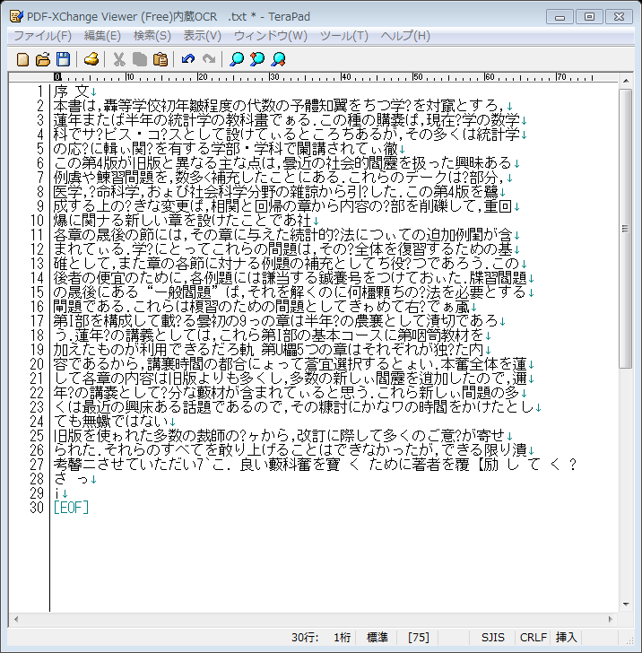 まずは、PDF Xchange Viewer(無料版)のOCR機能を使ってテキスト情報を抽出します。