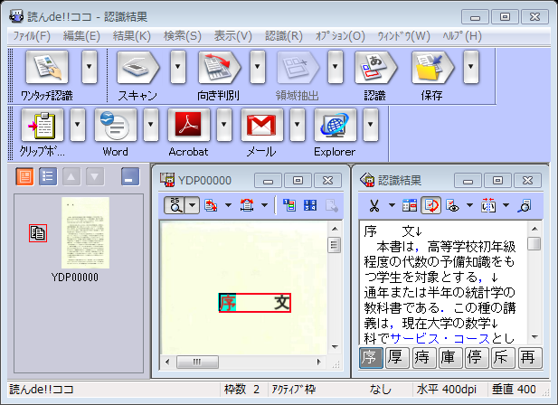 やり方は、ツールバーのOCRボタンを押して出てきたダイアログボックスでページ指定と、Primary Language をJapaneseに変更してOKを。