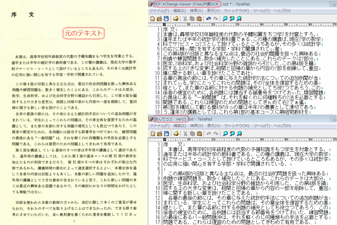 フリーソフトのPDF XChange Viewer(無料版)のOCR機能と、有料製品の読んde!!ココ Ver.13