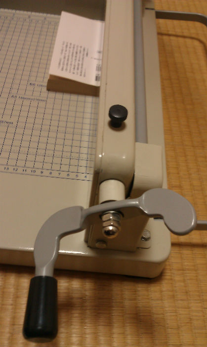 あと、旧式なギロチンカッターなので刃のあたりに手を近づけるときには細心の注意が必要です。よく切れますから!