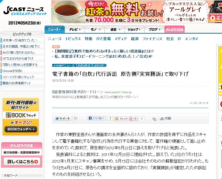 電子書籍の「自炊」代行訴訟 原告側「実質勝訴」で取り下げ J Cast Newsより