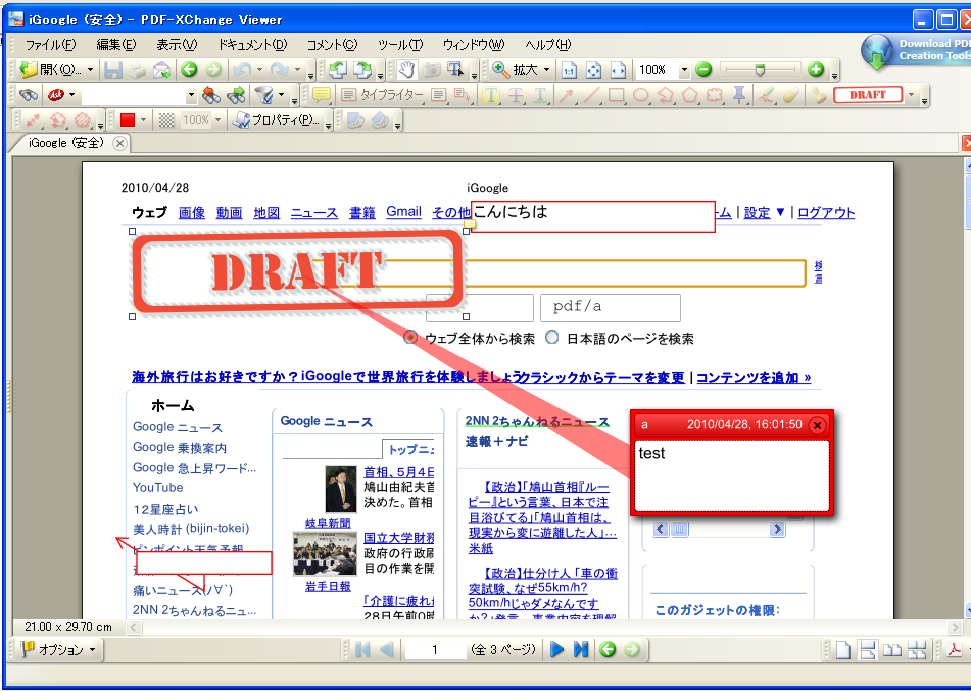 このソフトもFoxit J-Readerと同様、ビューアーとはいいながらも、ミニ・アクロバットととでも言いたいぐらい編集機能が豊富です。